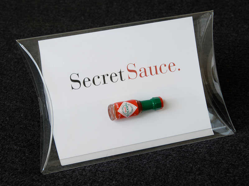 No branding effort can succeed unless internal audiences accept and make it their own. At Heller Ehrman, I sought out internal brand champions to help in this area. The Secret Sauce campaign used a play on the firm’s advertising and it’s signature logo color, known internally as “Tabasco.” This piece was delivered to anyone who stepped beyond their direct responsibilities to recognize the firm’s brand as an important asset. The cards explained general brand concepts and were designed to become visible keepsakes. As recipients’ colleagues inquired about them, the cards spread brand thinking organically throughout the firm.
